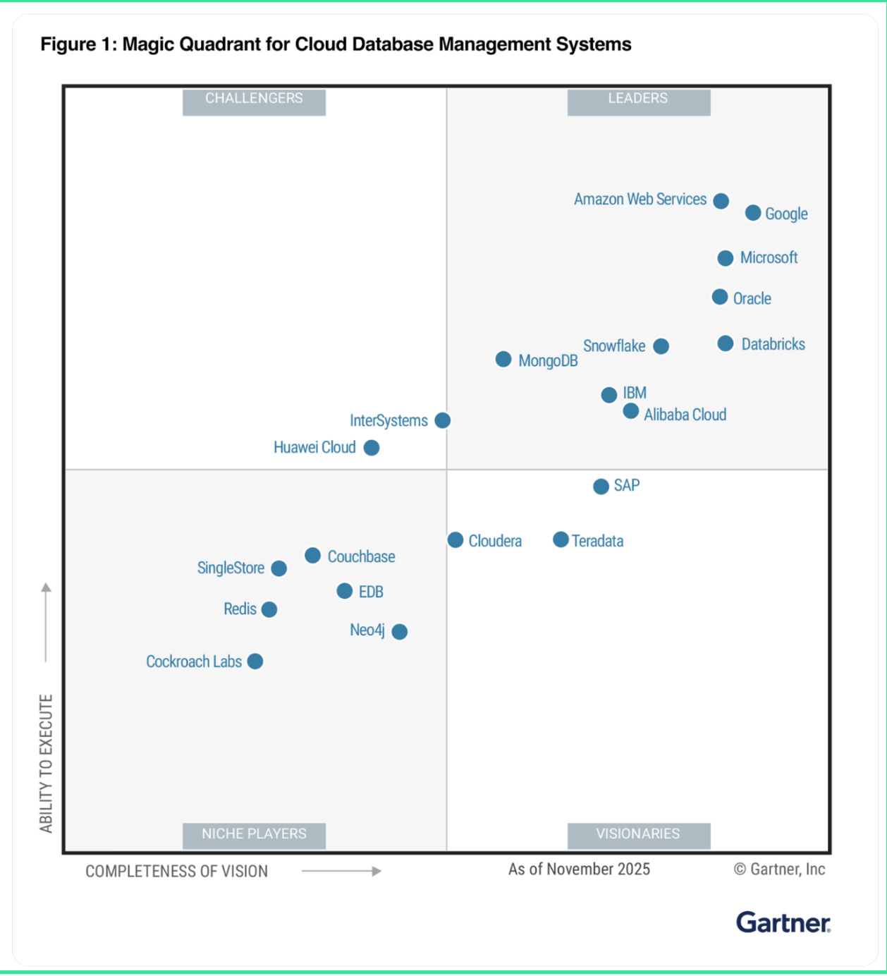 Google has been named a Leader in the Gartner Magic Quadrant for Cloud Database Management Systems, recognized for its “AI-native Data Cloud” vision. Check out the blog post and download the complimentary 2025 Gartner Magic Quadrant for Cloud Database Management Systems report.